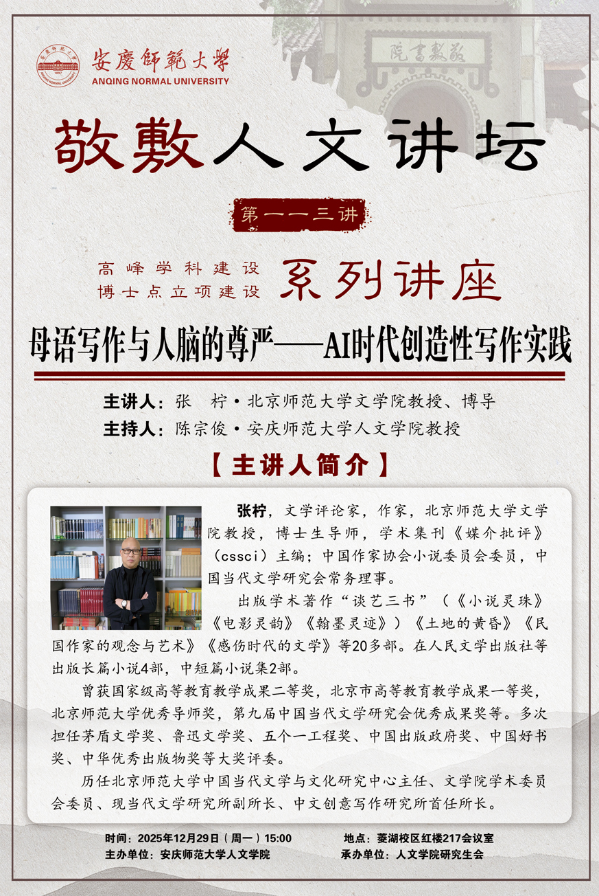 上一篇:张柠教授“母语写作与人脑的尊严”讲座成功举办