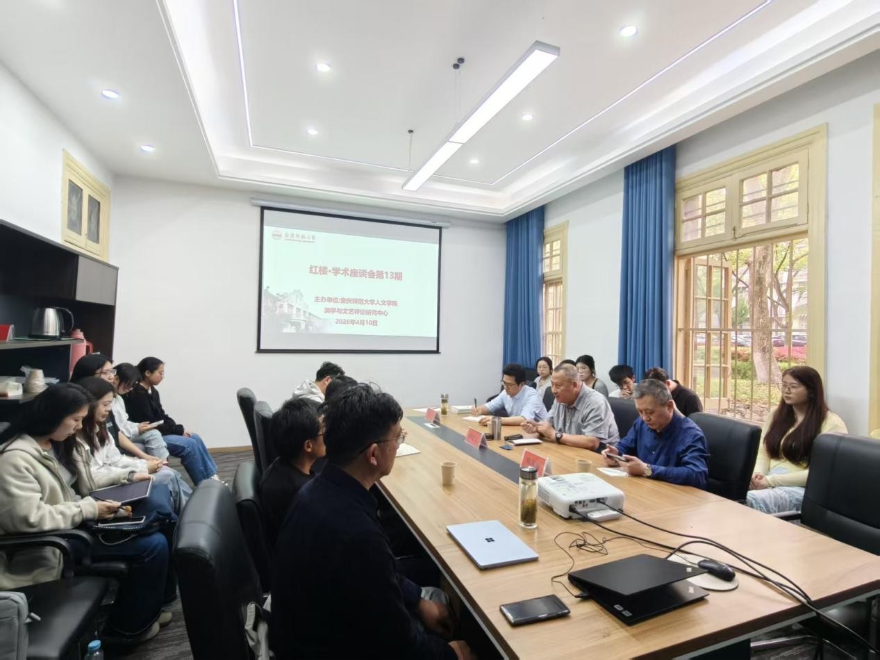 2026年4月10日下午,第十三期“红楼·学术座谈会”在红楼106会议室圆满举行。本次座谈会特邀中央民族大学钟进文教授、中国人民大学陈剑澜教授担任主讲嘉宾,美学与文艺评论研究中心主任、英国365集团公司教授江飞主持座谈会,美学与文艺评论研究中心、文艺学教研室师生共同参与研讨交流。