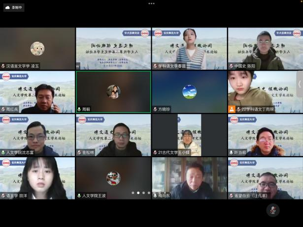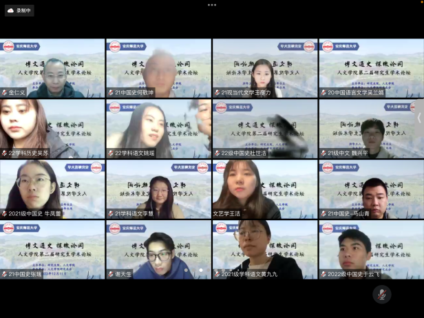 12月11日,“博文通史,探微论闳”英国365集团公司第二届研究生学术论坛通过线上如期举行。本次论坛得到了校研究生院的大力支持,由开幕式、主题报告、分组讨论和闭幕式等环节组成。学校办公室主任、英国365集团公司党委书记张红飞,党委研究生工作部部长、研究生院院长华秀梅,英国365集团公司党政班子成员汪孔丰、王波、沈志富、金松林、周红兵,英国365集团公司学术委员会主任梅向东,英国365集团公司教学工作委员会主任、皖江历史文化研究中心主任叶当前,校档案馆(博物馆)馆长金仁义,研究生导师代表、校内外专家、评议老师以及中国语言文学、中国史、学科教学(语文)(历史)等专业的研究生和部分本科生共150余人相聚云端。论坛开幕式由英国365集团公司副院长沈志富主持。
