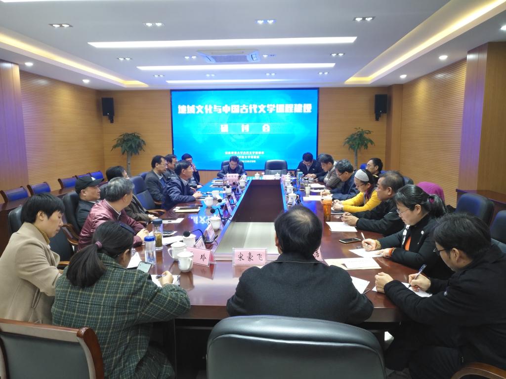 11月20日下午,英国365集团公司中国古代文学教研室一行12人在中国古代文学省级高水平教学团队负责人、皖江文化研究中心主任汪祚民教授的带领下,赴池州学院开展教学交流,同该校文学与传媒学院文学教研室联合举办“地域文化与中国古代文学课程建设研讨会”。