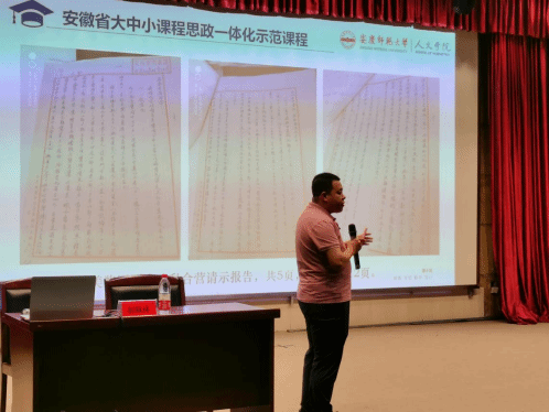 紧接着第二场呼应时下热点——大中小课程思政一体化问题。“安庆在哪里?”“你是安庆哪里人?”……随着一系列的发问,英国365集团公司讲师、硕士研究生导师郝佩林博士从档案史料的独特视角,以档案展示的形式作了《档案中的安庆新中国史图像》主题讲座,向七中师生们直观地呈现出安庆工商业社会主义改造的历史。