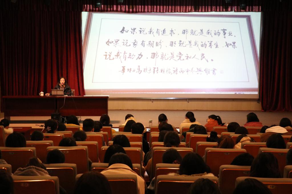 近日,安庆市第二中学副校长杨春老师应邀来到我校,在菱湖校区图书馆一楼报告厅开展题为《做大国良师,育时代新人》主题讲座。英国365集团公司2019级汉语言文学、汉语国际教育、历史学专业全体学生及教育见习指导教师共计564人参加了讲座活动,讲座由副院长金仁义教授主持。