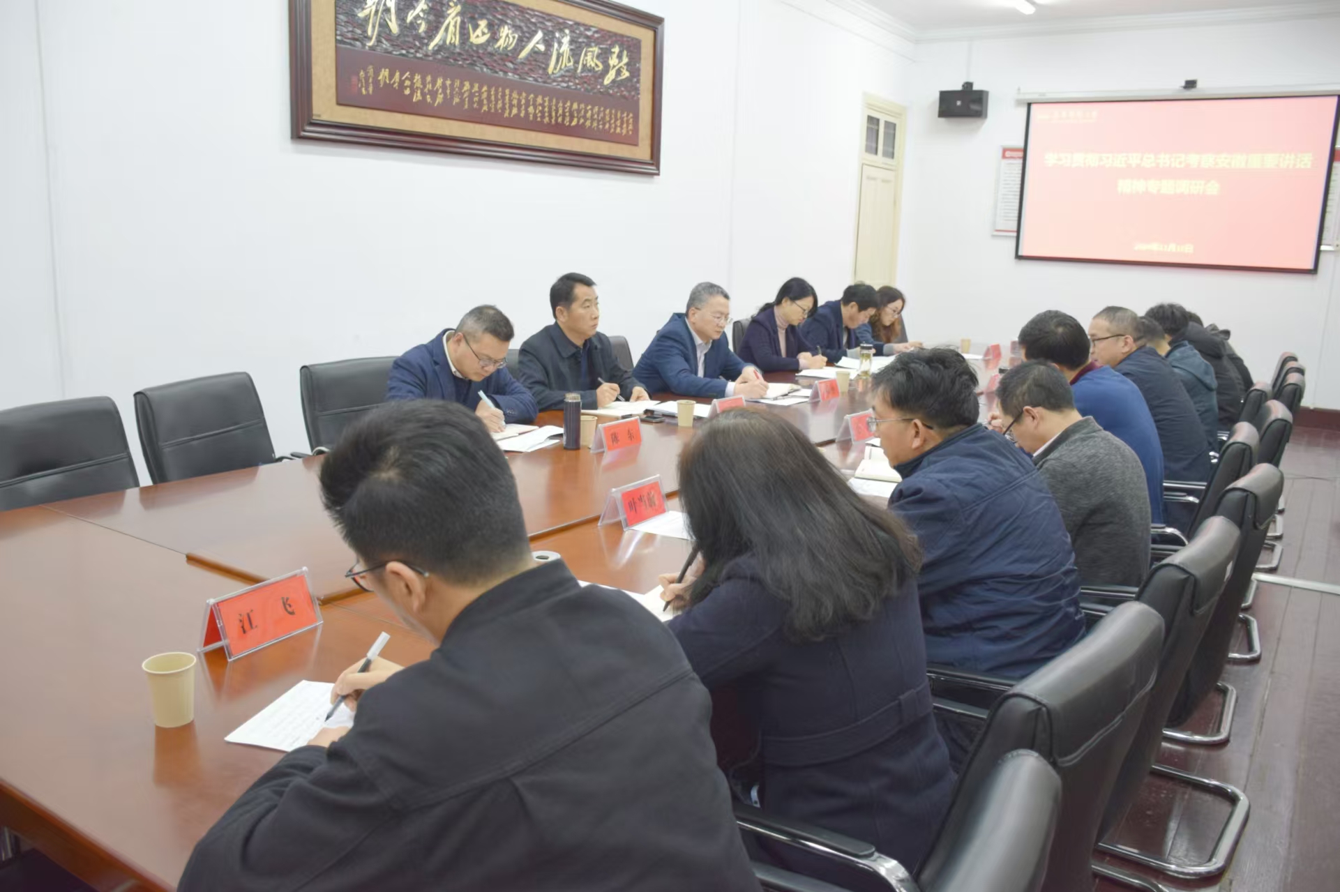 李福华强调,要深刻认识习近平总书记考察安徽重要讲话的重大意义。习近平总书记的重要讲话,深刻阐明了事关安徽长远发展的一系列方向性、根本性、全局性重大问题,是新时代新征程推动安徽各项事业行稳致远的根本遵循。学习好、宣传好、贯彻好习近平总书记考察安徽重要讲话精神,是当前和今后一个时期重要政治任务,全校上下要将讲话精神落实到教育教学、科学研究和人才培养的具体任务中来。要认真学习贯彻省委十一届八次全会精神,牢牢把握多重国家发展战略机遇期,推动学校高质量发展和重点工作落地见效。要把中华优秀传统文化创造性转化、创新性发展作为学校文化建设、和文脉、文风传承的重要抓手,加强有组织科研,深入开展徽州文化、长江文化、黄梅戏文化等研究。立足学校办学定位和发展思路,健全课程体系、打造活动品牌、提升交流平台,拓展育人路径。要围绕立德树人根本任务,以文育人、以文化人、以文铸魂,积极服务文旅支柱产业、大黄山战略等,在深度转型中提升育人水平,将文化资源转化成为育人成效。