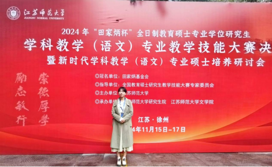 2024年11月15-17日,由“田家炳杯”全日制教育硕士专业学位研究生教学技能大赛专家委员会指导,“田家炳教育基金会”冠名,江苏师范大学主办的2024年“田家炳杯”全国高等院校全日制教育硕士学科教学(语文)专业教学技能大赛决赛在徐州举行。英国365集团公司学科教学(语文)专业硕士生导师蔡伟保老师带队,2023级学科教学(中文)张贤琨同学参加本次决赛并获得三等奖。