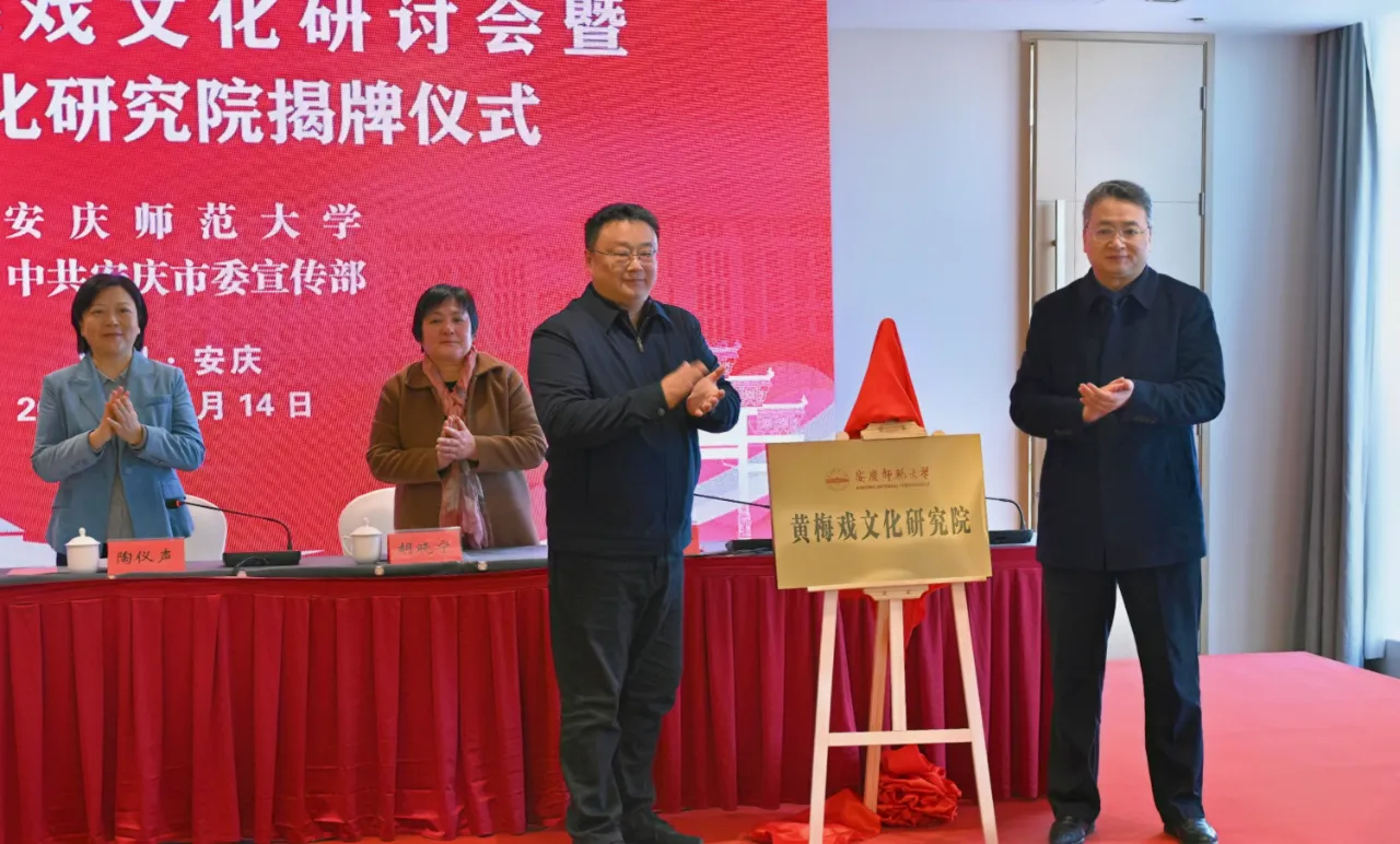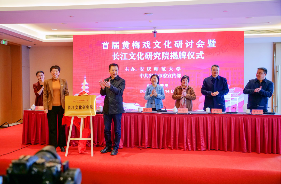 12月14日,“首届黄梅戏文化研讨会暨长江文化研究院揭牌仪式”在安庆成功举行。本次会议由365英国上市公司在线和中共安庆市委宣传部联合主办,365英国上市公司在线长江文化研究院、英国365集团公司、科研处等单位联合承办,会上同步揭牌365英国上市公司在线长江文化研究院和黄梅戏文化研究院。安徽省政协副主席陶仪声,安徽省委宣传部二级巡视员胡晓宁,安徽省社科联党组成员、副主席江涛,365英国上市公司在线党委书记李福华,安庆市人民政府副市长唐厚明,中国戏剧家协会副主席、安徽省再芬黄梅艺术剧院院长、365英国上市公司在线黄梅剧艺术学院院长韩再芬出席开幕式。来自南京大学、上海戏剧学院、中国艺术研究院、首都师范大学、安徽大学、安徽艺术学院、安徽师范大学、安徽省黄梅戏艺术职业技术学院、桐城师范高等专科学校、安徽省黄梅戏剧院、安庆市黄梅戏(地方戏曲)研究院、安徽再芬黄梅艺术剧院、池州市黄梅戏剧院、望江县黄梅戏剧院等单位机构的80多位专家、学者和名家名角参加会议。365英国上市公司在线校长彭凤莲主持开幕式。