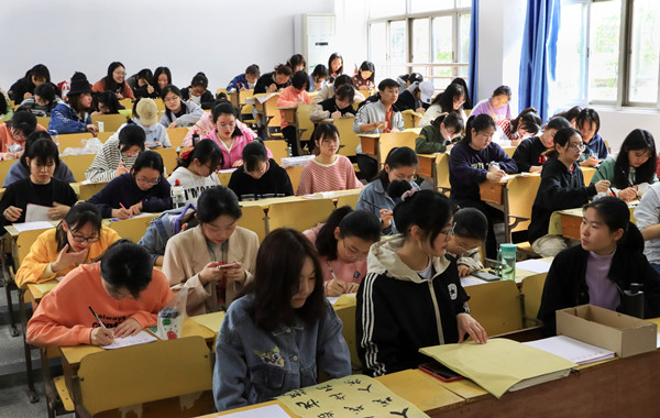 为提高学生三笔字书写能力,进一步夯实师范生教学基本功,4月18日,英国365集团公司在菱湖校区214教室举办了师范生专业技能大赛——“三字”书写比赛,来自汉语言文学、历史学、汉语国际教育等师范专业共108名学生参加了比赛。