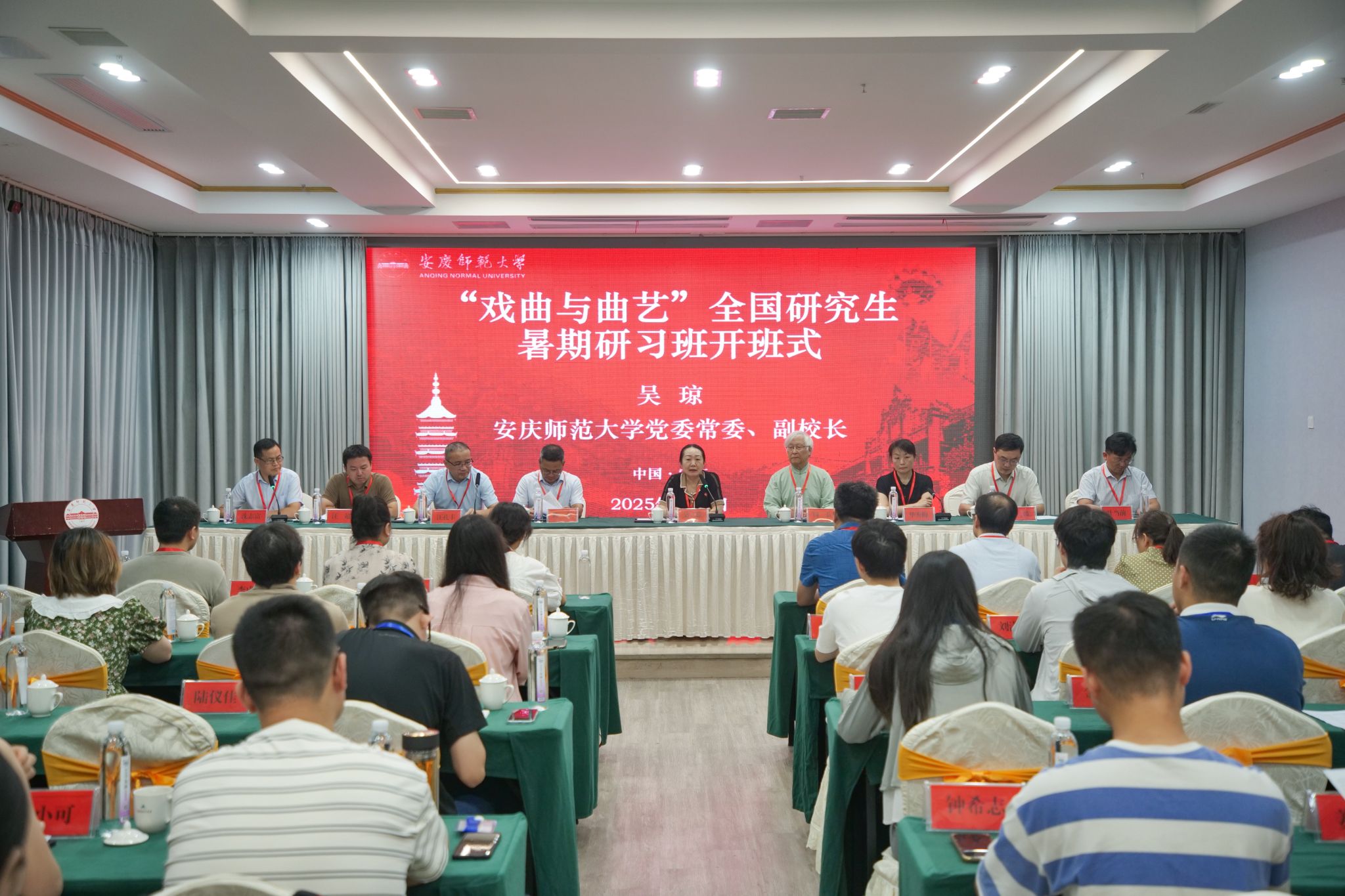 7月6日,2025年“戏曲与曲艺”全国研究生暑期研习班开班式在我校隆重举行,来自北京大学、南京大学、中国戏曲学院等全国20多所知名学府的青年学子参加学习研讨。校党委常委、副校长吴琼出席开班式并讲话,研习班特聘主讲专家、中国昆曲研究中心常务副主任、苏州大学博士生导师周秦教授出席,学科建设处、研究生院、英国365集团公司、黄梅剧艺术学院等单位负责同志参加开班式。