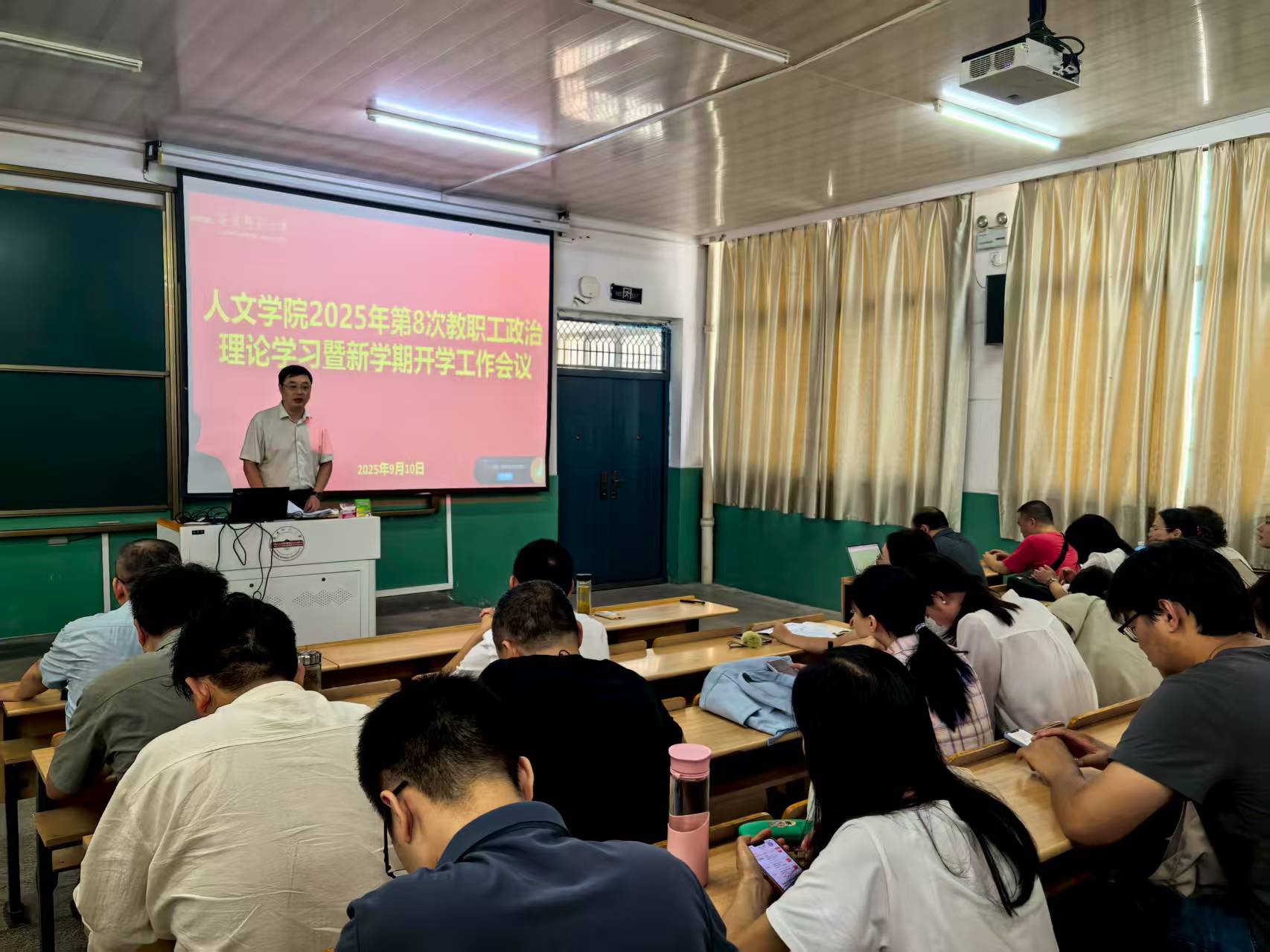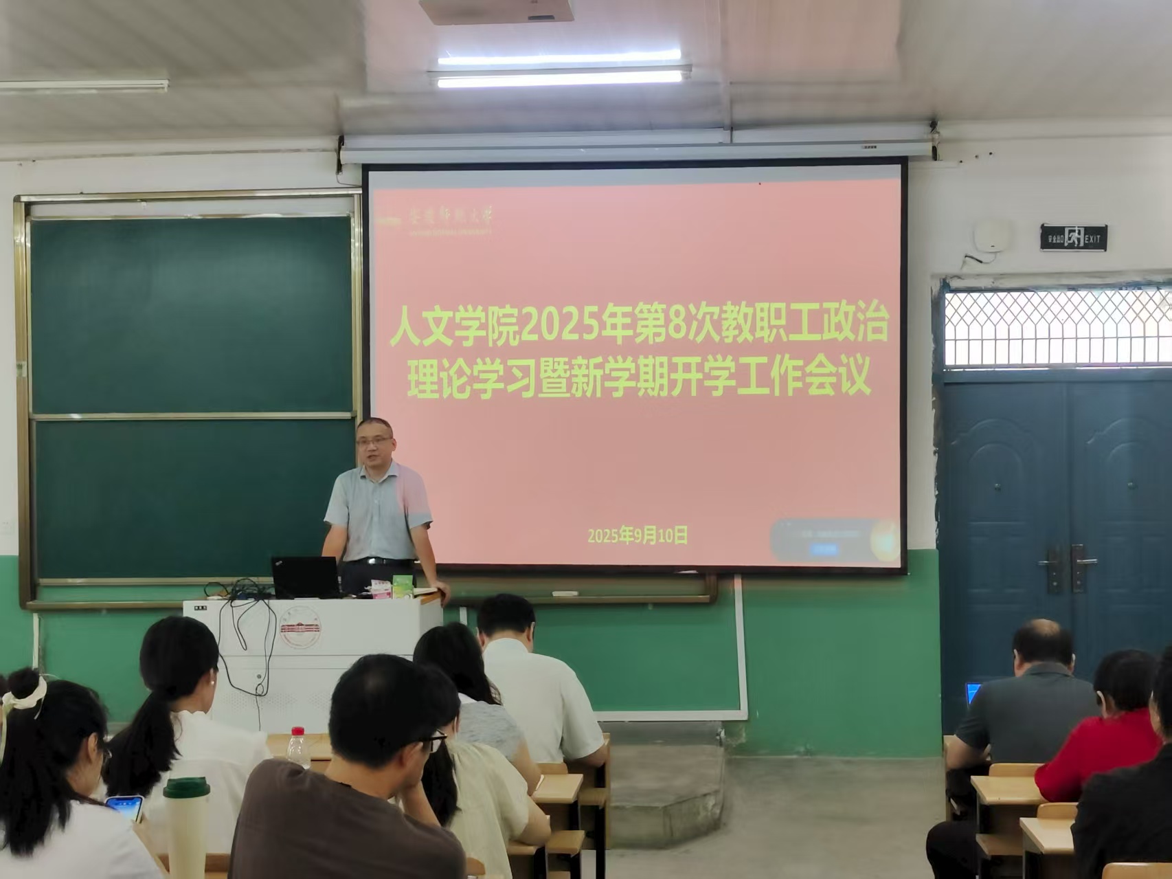9月10日,英国365集团公司在理二阶教室召开2025年第八次教职工政治理论学习暨新学期开学工作会议。学院领导班子、全体教职工参加会议,会议由院长汪孔丰主持。