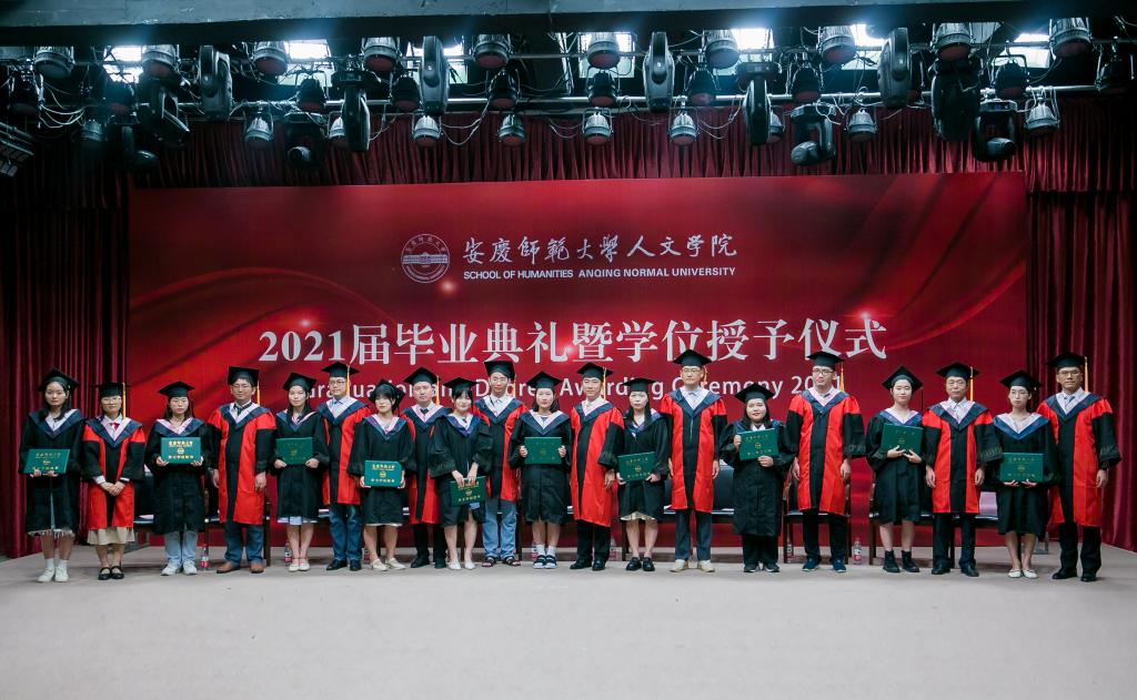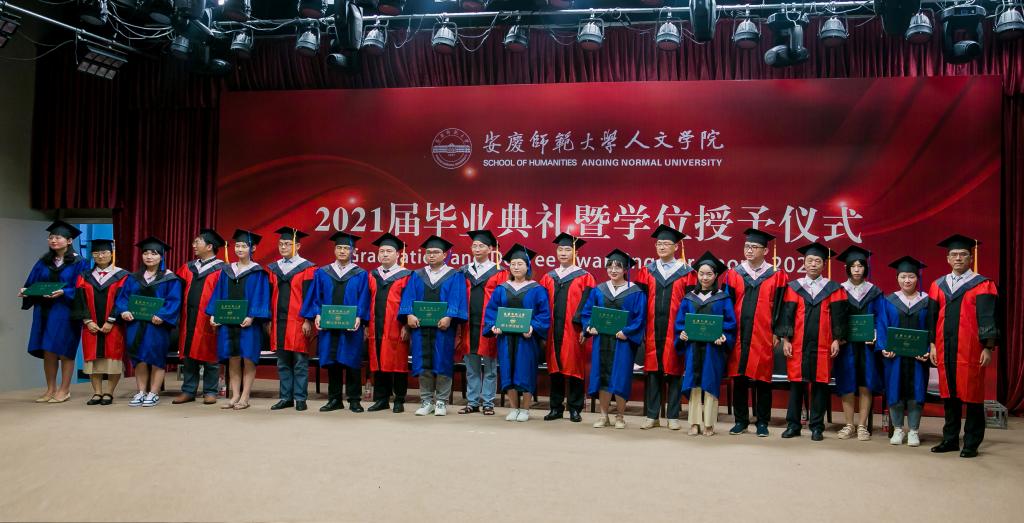 学位授予仪式上,2021届毕业生身着学位服,依次走上主席台,学院领导、学位委员会委员为毕业生一一扶正流苏,授予学位并合影留念,定格这一美好时刻。