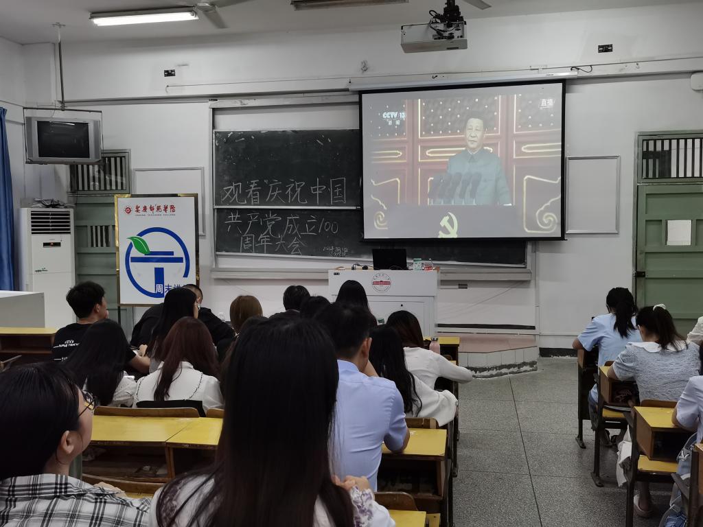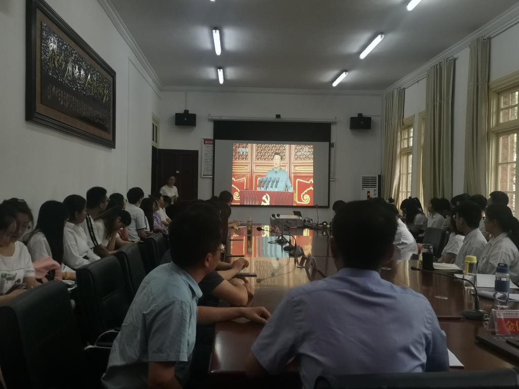 与此同时,各支部、各班级也组织师生收听收看大会。
