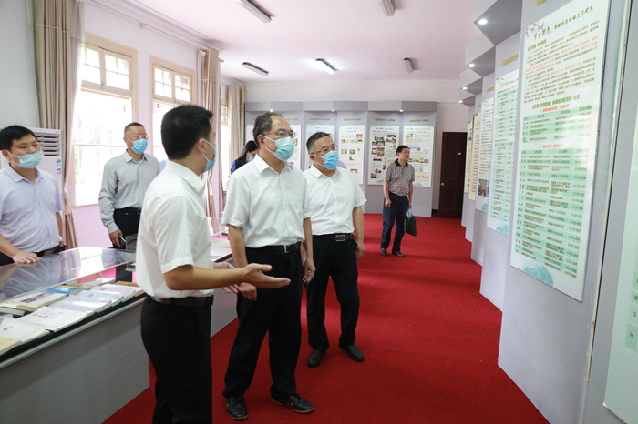 在中国语言文学一级学科育人成果展厅,学院党委书记张红飞和副院长汪超介绍了学院学科建设情况,就科学研究、人才引进、经费支持、资源配置等方面所取得成绩和下一步建设发展思路进行了汇报。