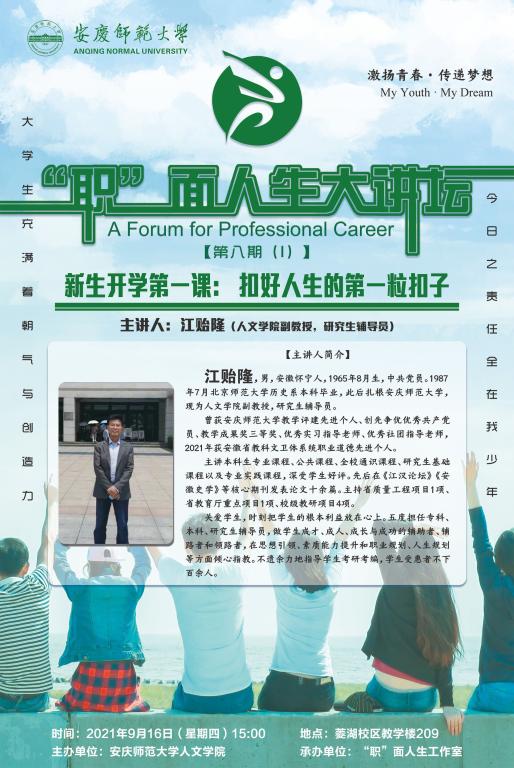 彰显风采,示范引领。为集中展示办学特色和育人成果,学院在敬敷书院两侧摆放展架,英国365集团公司话剧社、《季节风》杂志、龙睛读书社、“五月花”语言艺术晚会、省级样板支部等一批校园文化品牌建设成果和国家奖学金、学科竞赛获奖情况介绍向新生们全面展现了人文学子争先创优、锐意进取的良好风貌。宣传栏里“职”面人生大讲坛—开学第一课的海报吸引了大家的目光,“扣好人生第一粒扣子”助力新生坚定理想,树立志向。