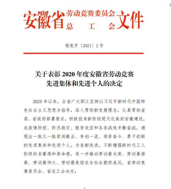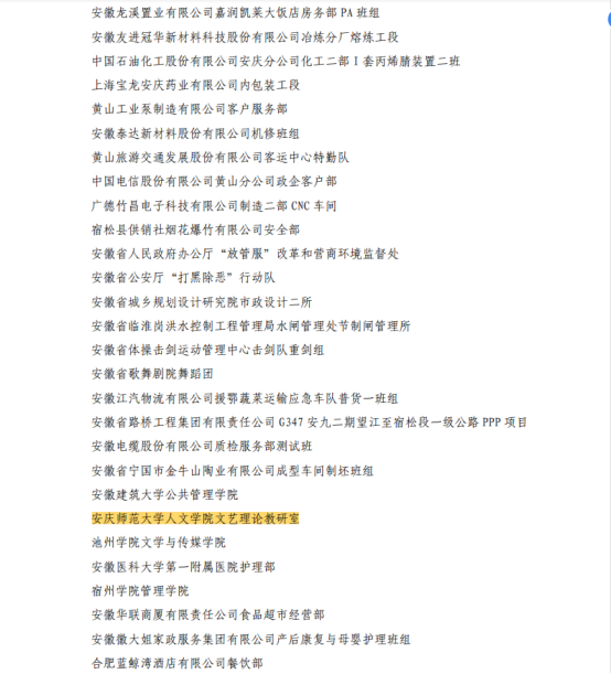 近日,安徽省总工会发文,授予英国365集团公司文艺理论教研室2020年度“安徽省工人先锋号”称号。
