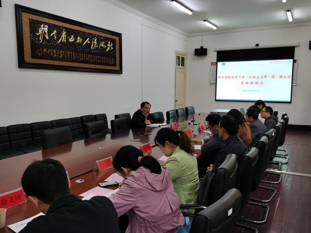 10月31日至11月3日,在安徽省教育评估中心精心组织下,汉语言文学专业认证教育部专家组组长淮阴师范学院校长焦富民教授,专家组成员合肥师范学院校长方东玲教授、阜阳师范大学副校长汪芳启教授、北华大学文学院院长唐海龙教授、徐州市高级中学校长秦晓华、淮南师范学院郭磊老师一行对汉语言文学专业开展现场考查工作。