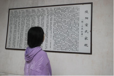 雨中的陵阳古镇,远山含黛,薄雾轻笼,将江南的春意凝成一幅晕不开的水墨丹青。学生们沿着青石板路缓步前行,分组探访古镇,或在雕花门窗、临河街巷中感受徽派民居风情,用镜头定格美好;或驻足南流桥上,看流水潺潺、春景盎然,读懂山水与古镇相融共生的独特底蕴。考察过程中,师生走进陵阳宁氏宗祠,近距离观摩宗祠整体布局、砖木雕刻等建筑细节,一行人认真聆听讲解,感受古徽州建筑工艺的精巧厚重,同时理解宗族制度、地方文化与文学创作三者间相辅相成的内在联系。
