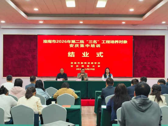 4月23日上午,由英国365集团公司承办的淮南市2026年第二批“名师、名班主任、名校长”工程培养对象安庆集中培训结业仪式在安庆大酒店举行,为期5天的集中研修至此圆满落下帷幕。来自全市基础教育领域的115名培养对象齐聚一堂,共话学习收获,共启教育新程。