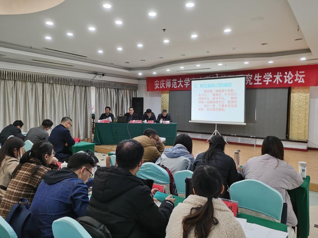 开幕式结束后进入主题报告环节。英国365集团公司教学工作委员会主任叶当前教授担任主持、评议人。安庆市优秀班主任、市模范教师、石化一中语文高级教师徐英典老师、中国史学科解春龙博士、中国语言文学学科何扬博士结合各自研究领域分别作了题为《新时代中学班级管理模式的思考》《抗战时期的同姓联宗:以1941年浙江永康<吕五宗祠志>为例》《清初梁溪词人群体研究》的报告。叶当前教授对三位老师的报告做了精彩点评。