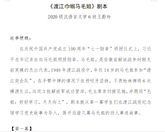 为增强学生的爱国意识、爱党意识、爱团意识,英国365集团公司话剧社征集与“红色记忆”小品、相声、话剧等相关语言艺术作品。话剧社社长、汉语言文学专业2019级1班万昕表示,选择“探寻家乡红色记忆”作为活动主题目的是让大家了解家乡的革命历史,体会那段艰难岁月。中国语言文学类2021级7班曹忆凡参加了本次比赛,在谈及剧本创作时,她说:“在创作之前我了解到2022年是建团一百周年,我对当时在安庆成立安徽共青团的主要历史人物做了调研。通过这次有意义的寒假活动,我了解了那段风云动荡的年代,我也要像先辈们学习,开拓进取、不懈奋斗!”