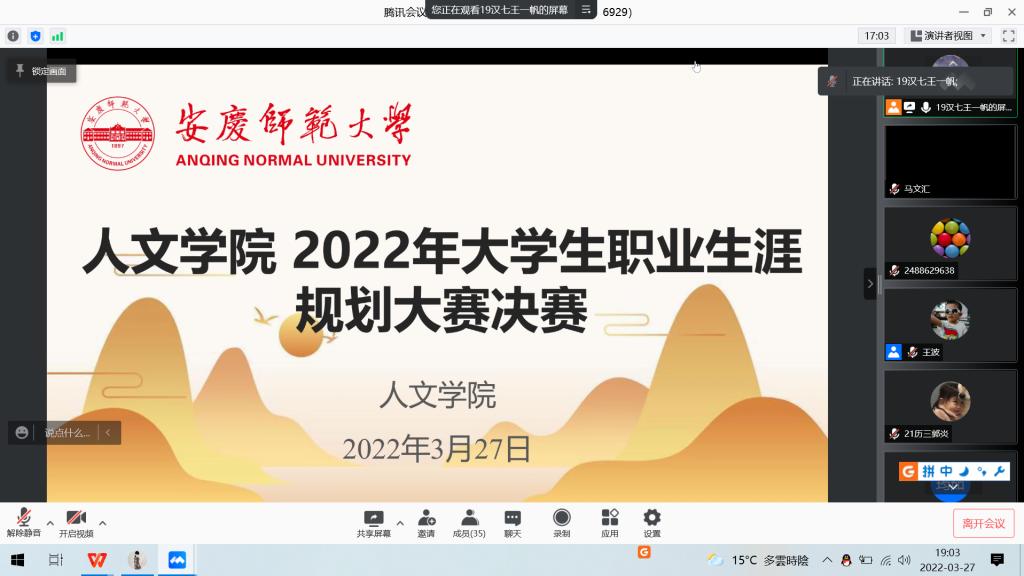 为提高大学生职业生涯规划的科学性,树立正确的职业观和就业观,3月27日,英国365集团公司线上举办了主题为“规划职业人生,放飞青春梦想”的2022年大学生职业生涯规划大赛决赛。英国365集团公司党委副书记王波、校大学生就业指导中心办公室主任张向辉、相关年级辅导员老师及华图教育高级讲师吴松、柴齐明、陈祝红应邀担任评委。