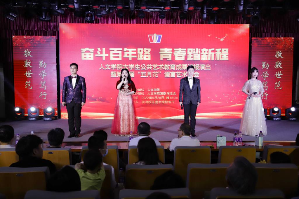 “好燃啊!”“她们跳得太棒啦!”……5月28日晚,在开场舞《WADADA》的律动中,英国365集团公司大学生公共艺术教育成果汇报演出暨第40届“五月花”语言艺术晚会于图书馆报告厅展开。英国365集团公司领导班子成员与教师代表、校友代表及200余名学生一同观赏这出视听盛宴。