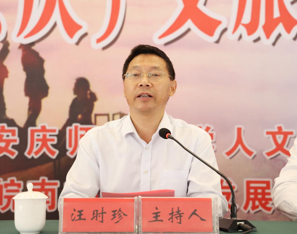 汪时珍主持皖南文旅融合发展研究院揭牌暨“大黄山”(安庆)文旅创意产业发展高端论坛开幕与揭牌仪式。
