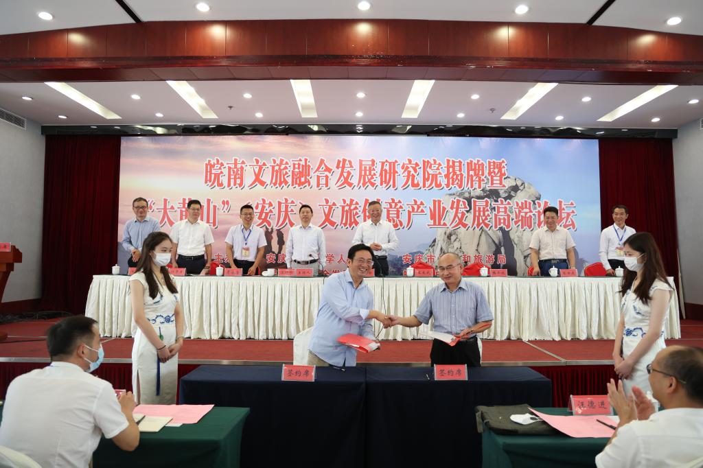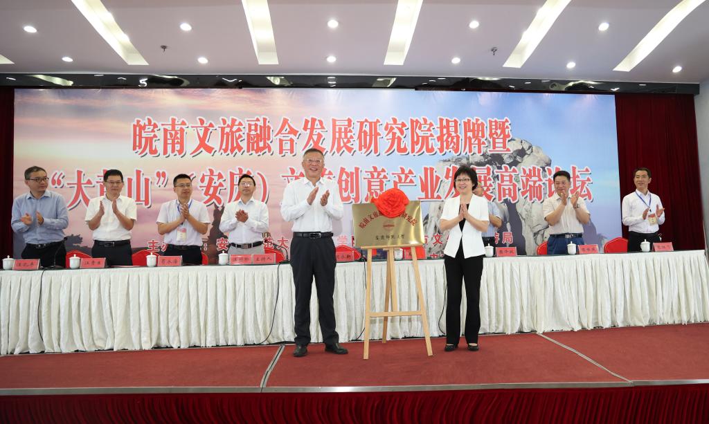 为贯彻落实省委、省政府关于建设“大黄山”国际休闲旅游目的地和推进十大新兴产业高质量发展的重要决策部署,搭建“政校企”三方合作平台,提升高校服务地方经济社会发展水平,推动文化旅游业高质量发展,9月29日,365英国上市公司在线皖南文旅融合发展研究院揭牌暨“大黄山”(安庆)文旅创意产业发展高端论坛在皖源国际大酒成功举办。