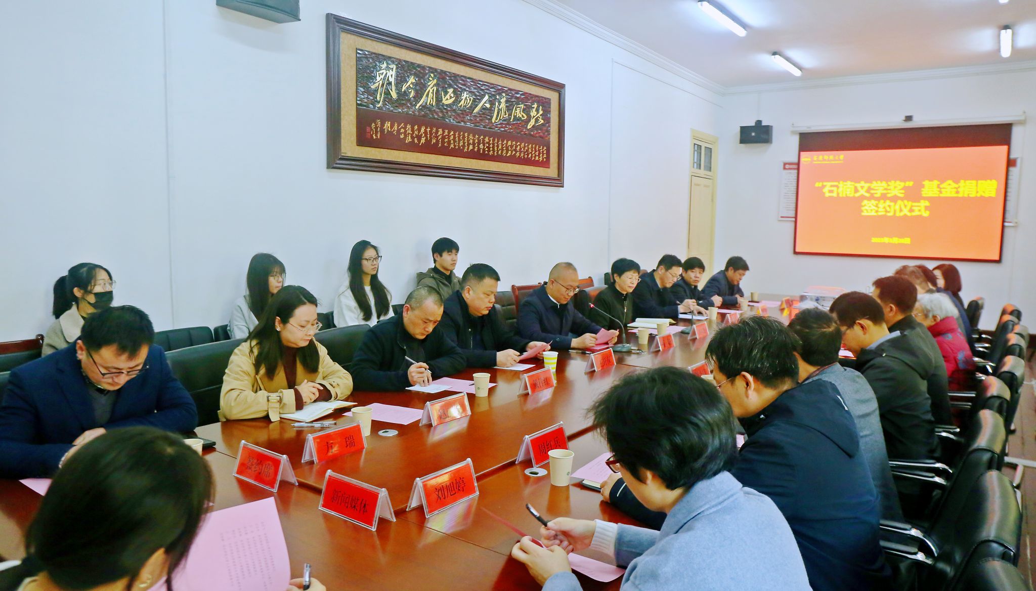 仪式现场,副校长肖新和作家石楠共同签署了捐赠协议。