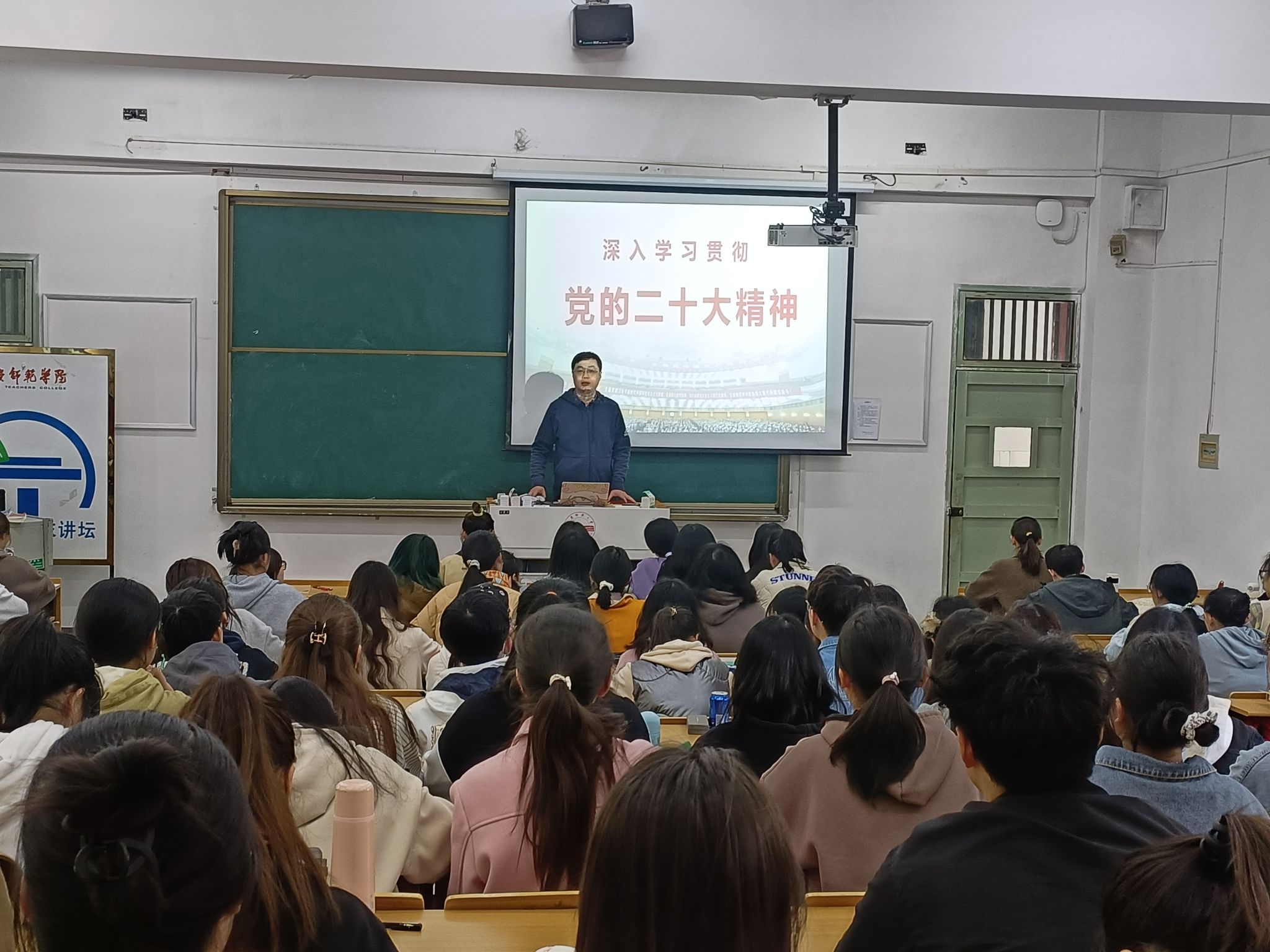 开班典礼结束后,王波作“中国共产党党员条件与当代大学生入党程序和动机”专题学习,详细介绍了大学生入党的条件与程序,勉励同学们认真学习、严于律己、争作表率,争取早日成为一名合格的共产党员。随后以“深入学习贯彻党的二十大精神”为主题开展理论宣讲。