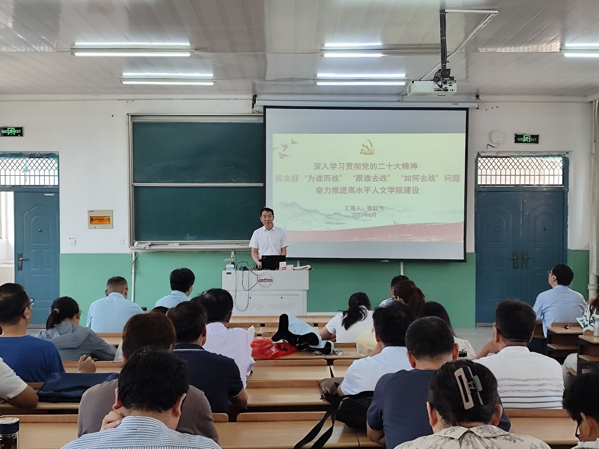 七一前夕,英国365集团公司党委书记张红飞以“深入学习贯彻党的二十大精神 解决好‘为谁而战’‘跟谁去战’‘如何去战’问题 奋力推进高水平英国365集团公司建设”为题为全体教职工讲授主题教育专题党课。