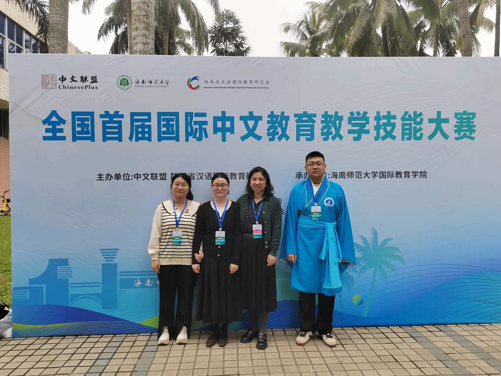 由汉语国际教育研究会与中文联盟、海南师范大学共同主办“全国首届国际中文教育教学技能大赛”于2023年12月2日至3日在海南师范大学龙昆南校区成功举办。英国365集团公司张瑾老师带队,2022级汉语国际教育专业张佳怡、胡晓凤、2023级国际中文教育硕士生罗浩诚三名选手赴海口参赛。