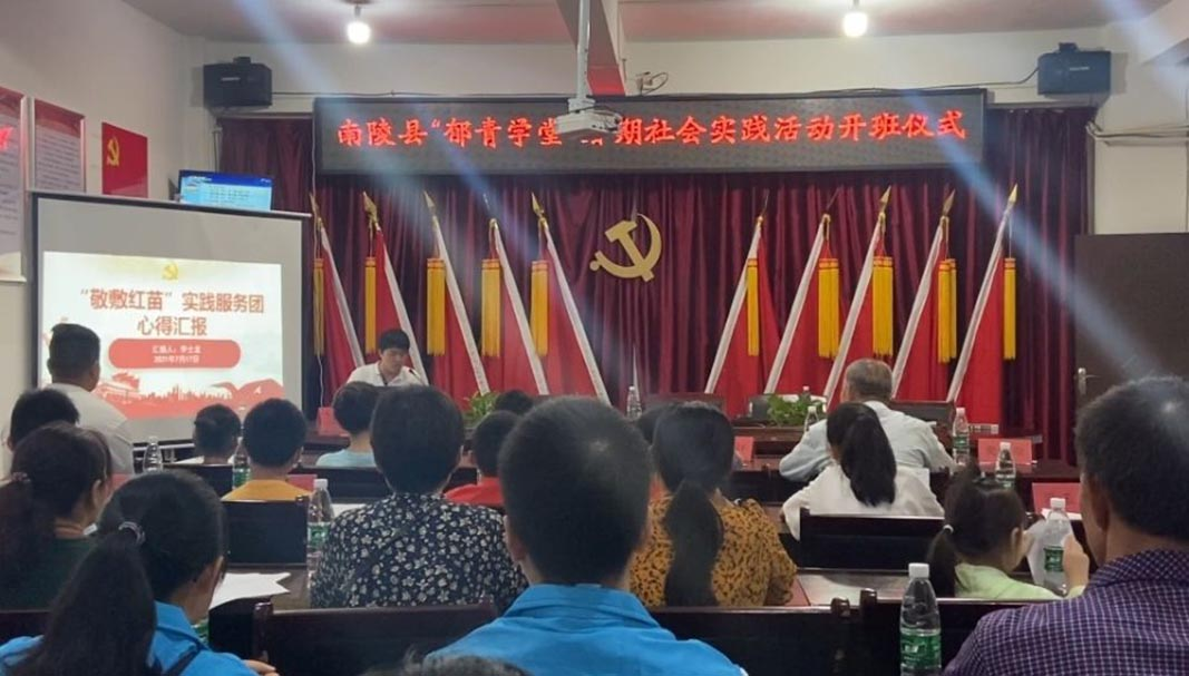 为展示团队红色文化学习调研成果,推动红色文化进课堂,7月17日上午,英国365集团公司学生第二党支部“敬敷红苗实践服务团"面向安徽省芜湖市南陵县和顺社区青少年儿童宣讲红色文化。
