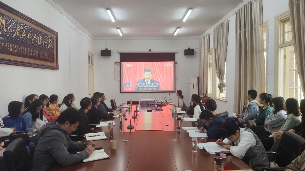 支部书记唐宫羽表示,党的二十大报告进一步指明了全面建设社会主义现代化国家、全面推进中华民族伟大复兴的前进方向。从2012到2022,从党的十八大到党的二十大,从一名青年学生到一名高校辅导员,我亲眼见证了党带领人民创造了彪炳史册的人间奇迹,亲身参与着实现中华民族伟大复兴的伟大事业。我深信党用伟大奋斗创造了百年伟业,也一定能用新的伟大奋斗创造新的伟业。作为一名做青年工作的高校思政工作者,我将深入大学生中去,坚持用党的科学理论武装青年,用党的初心使命感召青年,做青年朋友的知心人、青年工作的热心人、青年群众的引路人,和万千青年一起,为全面建设社会主义现代化国家、全面推进中华民族伟大复兴而团结奋斗!