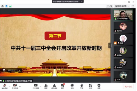为深入学习宣传贯彻党的二十大精神,落实立德树人根本任务,在具体教学中引导学生更深刻地了解历史、认识现实,推进省级一流本科专业建设,12月8日英国365集团公司历史学专业两个教师党支部联合开展了一次课程思政教学公开课活动,分别由省级课程思政示范课程《中国历史地理》负责人、中国古代史教研室沈志富老师和《中华人民共和国史》课程主讲、中国近现代教研室主任郝佩林老师进行教学展示。学院副院长周红兵、学校教学督导员、历史学专业教师党支部书记、教研室主任、部分骨干教师以及2020级历史学本科生观摩了教学活动。因受疫情影响,活动采取线上教学形式。