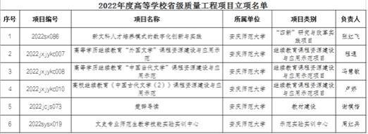 本次学院获批省级质量工程项目共计6项,覆盖4个项目类别。其中,新文科研究与改革实践项目1项,继续教育教学改革项目3项,教材建设1项,示范实验实训中心1项。